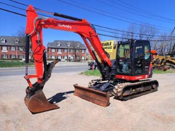 The Kubota KX080-4 S2 is a robust and powerful mini excavator designed for heavy-duty applications in construction, landscaping, and utility work. Equipped with a fuel-efficient Kubota V3307-CR-TE4 diesel engine, this model delivers excellent power and performance, making it well-suited for demanding tasks such as trenching, grading, and material handling. The KX080-4 S2 features an advanced hydraulic system that ensures smooth, precise control, allowing operators to handle intricate jobs with ease. Its compact design provides good maneuverability on confined job sites, while the spacious, climate-controlled cab enhances operator comfort with ergonomic controls, excellent visibility, and an easy-to-read digital display for monitoring machine performance. Compatible with a range of attachments—including buckets, breakers, and grapples—the Kubota KX080-4 S2 is a versatile, reliable choice for professionals who need a powerful mini excavator capable of tackling tough projects in various settings.