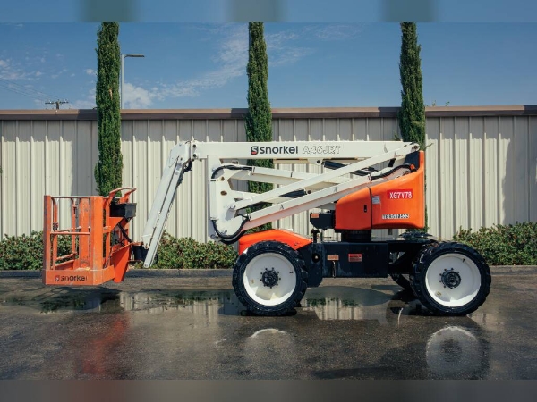 The Snorkel A46JRT articulating boom lift offers excellent maneuverability and reach, making it ideal for construction and maintenance tasks. Its rugged design ensures reliable performance on rough terrain.