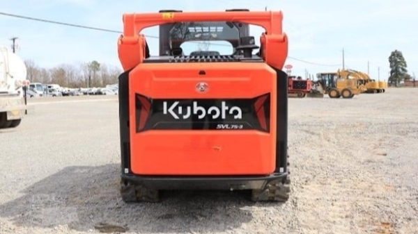 Kubota SVL75‑3 | OROPS (Open Cab), Standard Flow Hydraulcs, Bucket w/Edge or Teeth | Forks ($50/Day | $150/Week | $450/Month) | Grapple Bucket ($100/Day | $300/Week | $900/Month)| Trencher ($300/Day | $600/Week | $1,800/Month) | Brushcutter ($350/Day | $1,050/Week | $3,150/Month) | Auger w/Dirt Bit ($150/Day | $300/Week | $900/Month) | Auger w/Rock Or Stump Bit ($300/Day | $900/Week | $2,700/Month), 74.3 HP Diesel Engine, 2,300 Pound Rated Operating Capacity, 6,570 Pound Tipping Load, 6,204 Pound Bucket Breakout Force, 9,039 Pound Operating Weight, 17.4 GPM Standard Auxiliary Hydraulics, 29.3 GPM High‑Flow Hydraulics, Hydraulic Quick Coupler, 11.7 Inch Ground Clearance, 119.1 Inch Hinge Pin Height At Maximum Lift, 41.7 Inch Reach At Maximum Lift And Dump, 4.7 MPH Low Gear Travel Speed, 7.1 MPH High Gear Travel Speed, Enclosed Cab With HVAC (Optional), Standard Two‑Speed Travel, Suspension Seat, Roll‑Up Front Door, ISO Joystick Controls, Rubber Tracks, Compatible With Wide Range Of Universal Quick Attach Implements.