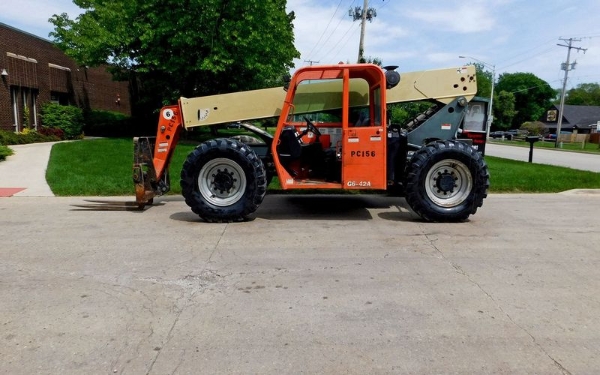 The JLG G6-42A telehandler is a powerful and versatile material handling solution. With a 6,000-lb lifting capacity and a maximum reach of 42 feet, it is well-suited for construction and industrial applications. Its 4WD capabilities and ergonomic design ensure smooth operation on various terrains. The G6-42A is built for precision and reliability, making it a trusted choice for demanding job sites.