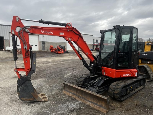 The Kubota U48-5 is a powerful, compact, and versatile mini excavator designed for efficiency and maneuverability in tight spaces, making it ideal for construction, landscaping, and utility work. With a zero-tail-swing design, the U48-5 allows operators to work close to walls and obstacles without the risk of rear overhang collisions, enhancing safety and productivity on restricted job sites. Powered by a reliable Kubota diesel engine, this model offers impressive digging force and precise hydraulic control, allowing for efficient handling of tasks like trenching, grading, and material handling. The U48-5’s spacious cab is designed with operator comfort in mind, featuring ergonomic controls, excellent visibility, a comfortable seat, and an easy-to-read digital display for real-time performance monitoring. Compatible with a variety of attachments, including buckets, augers, and hydraulic breakers, the Kubota U48-5 provides the power, versatility, and reliability that professionals need to tackle a wide range of projects with confidence.